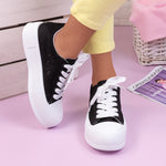 Дамски кецове Patrisha - Black/White са изчистен и много удобен модел, изработен от текстил с дебелина на подметката - 4 см.