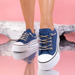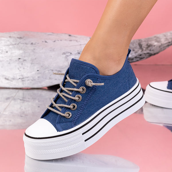 Дамски кецове Zayana - Blue са интересен модел с декорация и камъни, изработен от текстил с дебелина на подметката - 4 см.