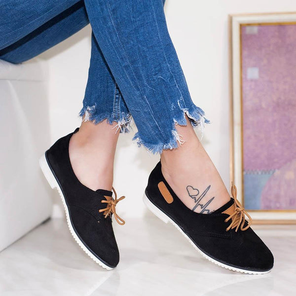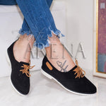 Дамски обувки ALEXIA – BLACK са изчистен модел с ниска подметка с връзки, изработен от еко велур. Моделът е наличен още в бежов, син и червен цвят.