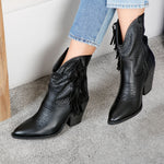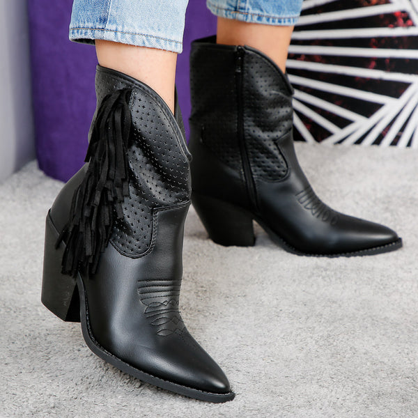 Представяме ви модела дамски боти Jilian – Black в класическо черно. Ботите са изработени от текстил в интериорната си част и от еко кожа в екстериорната си част. Те имат забележителен дизайн. От външната си страна са украсени с ресни, които придават шикозен вид на модела. Дамските боти Jilian – Black се затварят с цип от вътрешната страна. Те имат стабилен ток с височина 9 см. Подметката, токът и горната част на ботите е в черно. Моделът Jilian – Black е заострен отпред, в областта на пръстите, което придава повече елегантност на стъпалата на краката. Дамските боти Jilian – Black имат декоративни шевове отпред, което поставя допълнителен интересен акцент на дизайна. Те могат да се комбинират успешно с дънки или панталони във всички разцветки, тъй като черното е универсално по отношение на съчетаването си с други багри. Ние, от сайта https://www.iarena.bg/, ви предлагаме да поръчате модела Jilian – Black от нашия онлайн магазин на топ цена от 69 лева. Дамските боти са налични в следните размери – 36, 37, 38, 39, 40 и 41. Побързайте и купете чифт от тези атрактивни и универсални боти. С тях визията ви ще се облагороди. Ботите от серията Jilian се предлагат и в други цветове: Jilian Beige – в бежово и Jilian Camel – в светлокафяво.