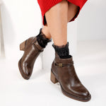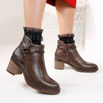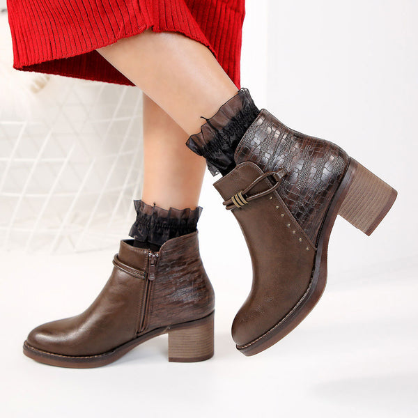 Екстериор - еко кожа, интериор - топла подплата, ток - 6,5 см.