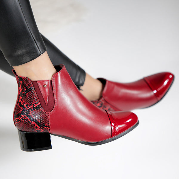 Екстериор - еко кожа и лачена еко кожа, интериор - топла подплата, ток - 4,3 см.