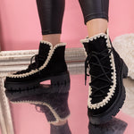 Дамски боти Becca - Black са ежедневен модел с декорация, изработен от еко велур с дебелина на тока - 4,5 см.