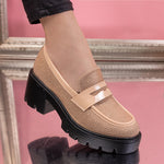 Дамски обувки Amber - Khaki са ежедневен модел с декорция, изработен от еко велур с дебелина на тока - 4 см.