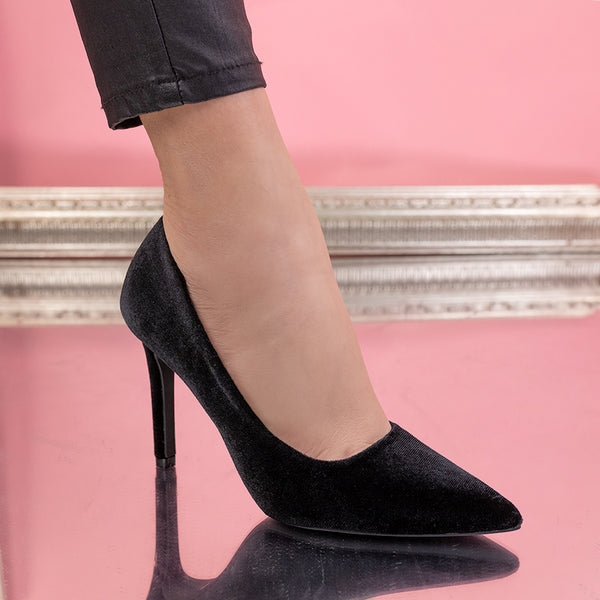 Дамски обувки на ток Meliha - Black са много елегантен модел, изработен от текстил (кадифе)...
