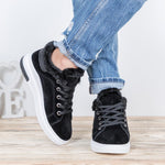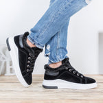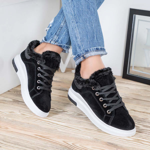 Дамски кецове LEA – BLACK с леко повдигната подметка идват с много качествена изработка, в която са вложени само здрави и издръжливи материали - еко велур и мека, топла подплата. Те са спортен модел ежедневни обувки, с които ще се чувствате прекрасно през целия ден. Гарантират удобство и лека походка. Стилната им елегантност ги превръща в желано допълнение към всяка модна визия.