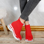 Дамски кецове на платформа Alona - Red са изключително удобни, изработени са от текстил. Подметката е с височина 5,5 см, вътрешната платформа е 2.5 см.