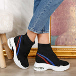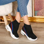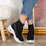 Дамски кецове на платформа Divna - Black са интересен модел, изработен от текстил с цветни детайли от брокат. Подметката е висока 5,5 см, а вътрешната платформа е 2 см.