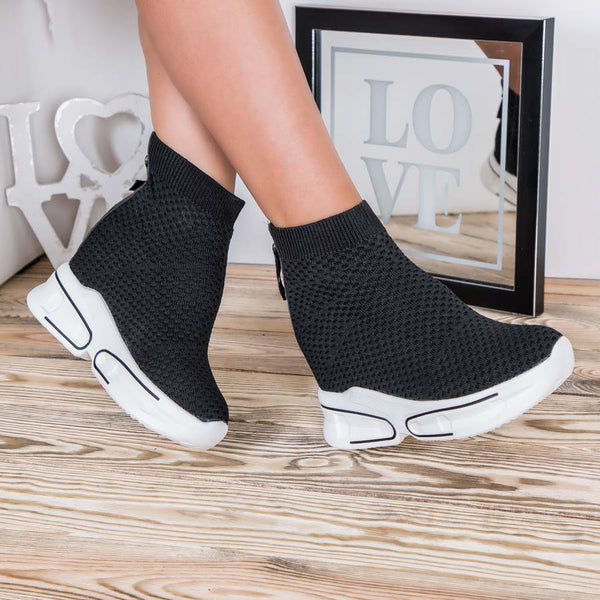 Дамски кецове на платформa Trayana - Black са семпъл модел, изработен от текстил. Подметката е висока 3 см, а вътрешната платформа е 5,5 см.