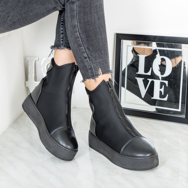 Дамски кецове Siera – Black са страхотно решение за всички дами, които живеят на пълни обороти и се нуждаят от модни, стилни и елегантни обувки за ежедневието. Изработени от неопрен, кецове Сиера ще ви дарят с много топлина и комфорт. Дебелата им подметка от една страна придава височина и издължава фигурата, а от друга прави походката лека и уверена.