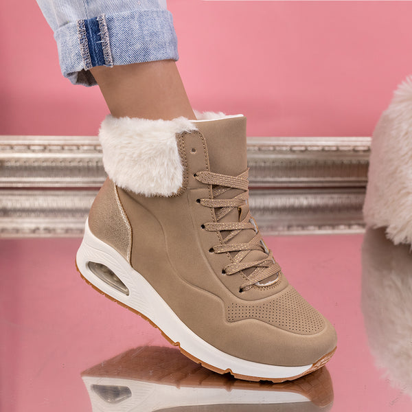 Дамски кецове Fabiola - Khaki са интересен модел, изработен от еко кожа с дебелина на подметката - 5 см.