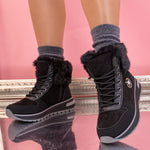 Дамски апрески Ralena - Black са много удобен модел, изработен от еко кожа и еко велур с лека подплата и дебелина на подметката - 4 см.