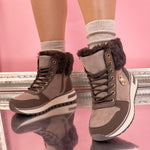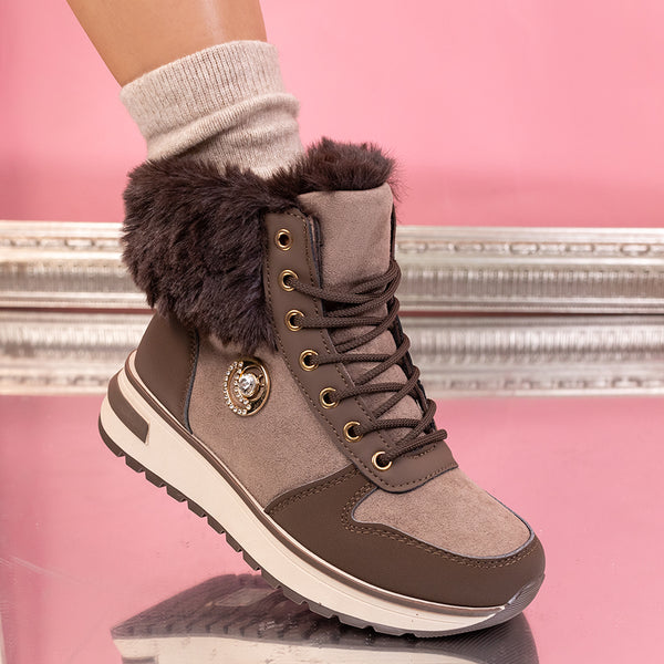 Дамски апрески Verona - Brown са много удобен модел, изработен от еко кожа и еко велур с дебелина на подметката - 5 см.