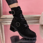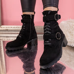 Дамски ботуши Shannon - Black са много удобен модел с декорация, изработен от еко велур с дебелина на тока - 5 см.