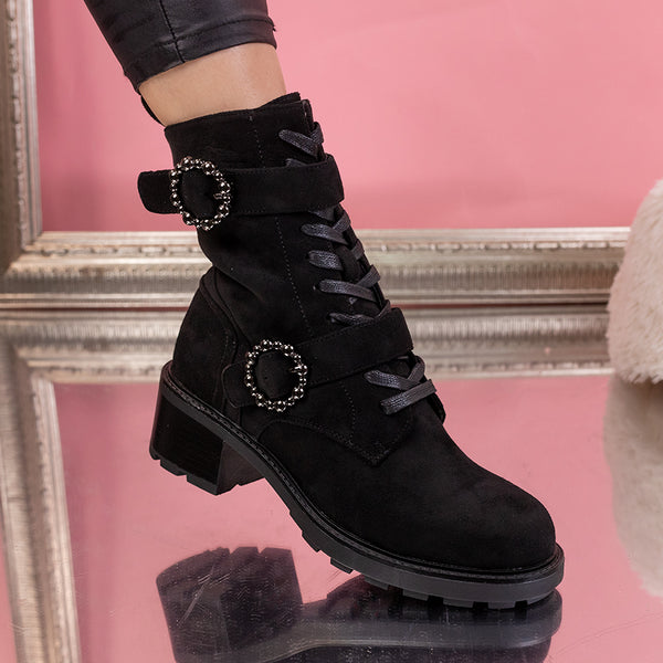 Дамски боти Becca - Black са ежедневен модел с декорация, изработен от еко велур с дебелина на тока - 4,5 см.