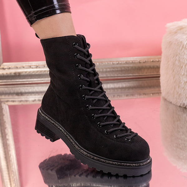Дамски боти Emma - Black са много удобен модел с декорация, изработен от еко велур с дебелина на тока - 4 см.
