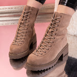 Дамски боти Emma - Khaki са много удобен модел с декорация, изработен от еко велур с дебелина на тока - 4 см.