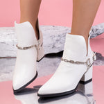Дамски боти на ток Valesa - White са елегантен модел с верижка, изработен от еко кожа с височина на тока - 7 см.