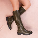 Дамски ботуши на нисък ток Glenda - Green са много изчистен модел от еко кожа с дебелина на тока - 3,5 см и обща дължина на модела - 42 см.