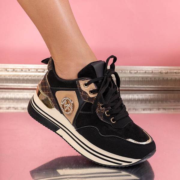 Дамски маратонки Klara - Black са много удобен модел с декорация, изработен от еко кожа и велур с дебелина на подметката - 4,5 см.