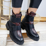 Дамски боти Venera - Black са интересен модел с декорация, изработен от лачена еко кожа с топла подплата и дебелина на подметката - 4,5 см.