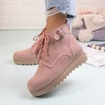 Дамски боти Debby - Pink са много удобен модел на лека платформа с височина 5 см. Изработени са от обърната естествена кожа с декоративна катарама.