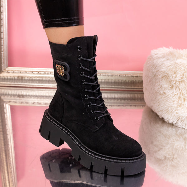 Дамски боти Felisha - Black са изчистен модел с декорация, изработен от еко велур с...