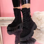 Дамски боти Felisha - Black са изчистен модел с декорация, изработен от еко велур с дебелина на тока - 5,5 см.