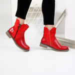 Дамски боти Venera - Black са интересен модел с декорация, изработен от лачена еко кожа с топла подплата и дебелина на подметката - 4,5 см.