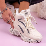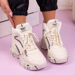 Дамски боти Mirra - Beige са ежедневен спортен модел, изработен от еко кожа с топла подплата и дебелина на подметката - 4,5 см.