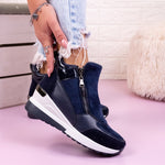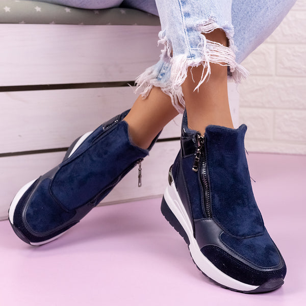 Дамски боти на платформа Keyra - Navy са много удобен ежедневен модел, изработен от еко велур и еко кожа с лека подплата и височина на платформата - 6 см.