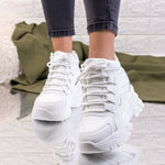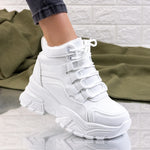 Дамски боти на платформа Laguna - White са много удобен модел, изработен от еко кожа с лека подплата и височина на платформата - 7,5 см.