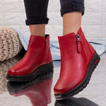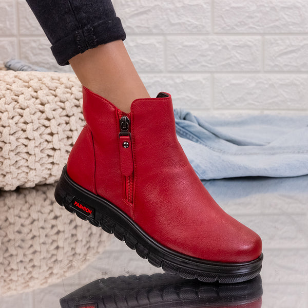 Дамски боти Paolina - Red са лек и много удобен модел, изработен от еко кожа с топла подплата и дебелина на подметката - 3,5 см.