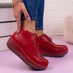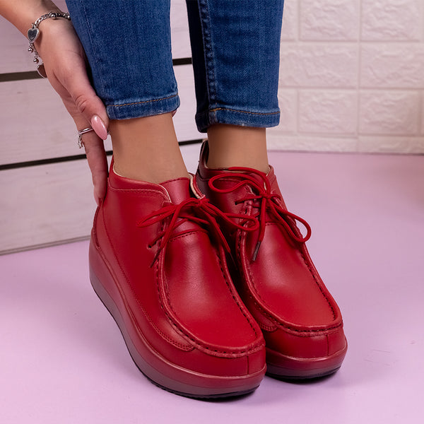 Дамски боти Safira - Red са ежедневен модел, изработен от естествена кожа с дебелина на подметката - 5 см.