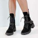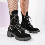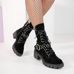 Дамски боти Reyna - Black са изчистен модел с декорации, изработен от еко кожа с топла подплата и дебелина на подметката - 4 см.