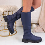 Дамски ботуши на нисък ток Zarra - Navy са изчистен модел, изработен от еко кожа с топла подплата и височина на тока е 4,5 см.