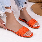 Дамски чехли Atena - Orange са много семпъл и удобен модел на ниска подметка. Изработени са от еко кожа с декорация.