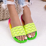 Дамски чехли Emilia - Green леки и удобни дамски чехли на ниска подметка, изработени от текстил.