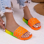 Дамски чехли Emilia - Orange леки и удобни дамски чехли на ниска подметка, изработени от текстил.