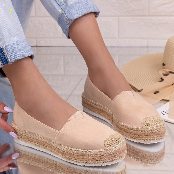 Дамски еспадрили Brenda - Beige са семпъл и удобен модел на дебела подметка. Изработени са от еко велур с дебелина на подметката - 4,5см.