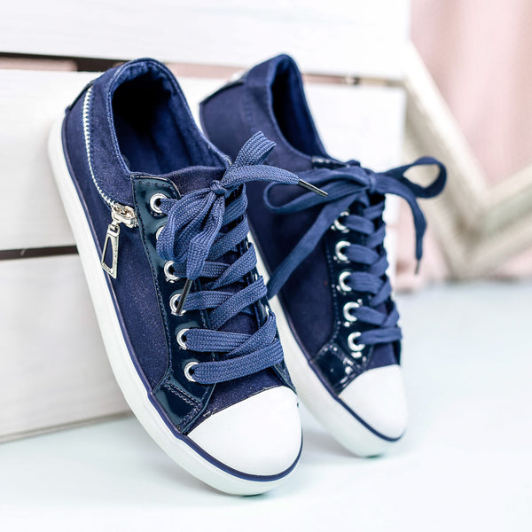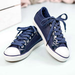 Дамски кецове Edel - Navy са симпатичен модел с декорации, изработен от текстил с дебелина на подметката - 4,5 см.