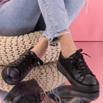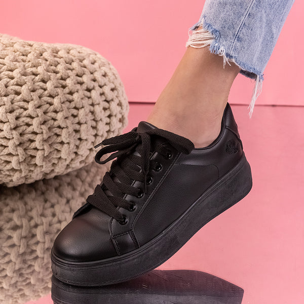 Дамски маратонки Marry - Black са удобен модел, изработен от еко кожа и текстил с дебелина на подметката - 4,5 см.
