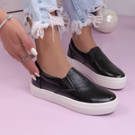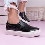 Дамски кецове Catrina - Black са модерен и изчистен спортен модел.Изработени са от лачена еко кожа, която имитира змийски принт. Дебелината на подметката е 3,5 см.