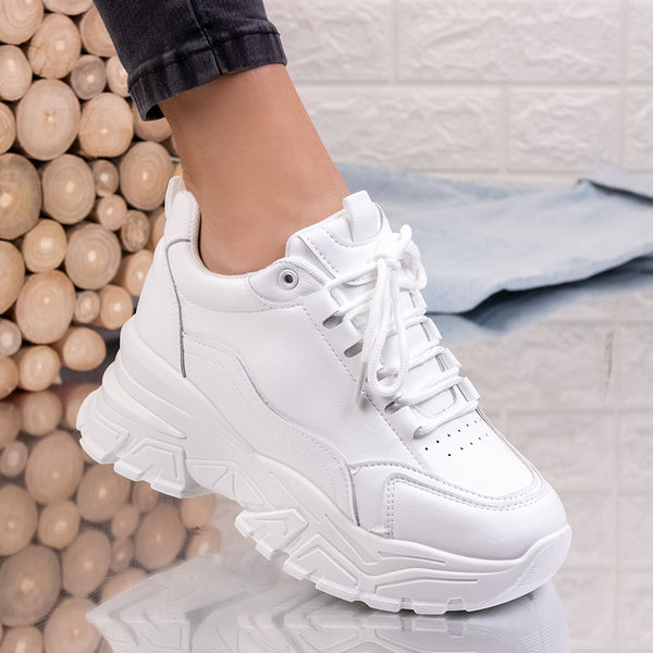 Дамски кецове на платформа Stefany - White са много удобен модел, изработен от еко кожа с височина на платформата - 6,5 см.