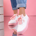 Дамски кецове Teria - White/Pink са интересен модел, изработен от еко кожа с дебелина на подметката - 3 см.