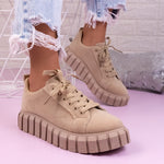 Дамски обувки Alena - Khaki са ежедневен модел с декорация и принт, изработен от еко велур с дебелина на подметката - 3,5 см.