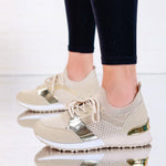 Дамски маратонки Missy - Beige са удобен модел, изработен от тестил за вашите ежедневни разходки. С Дамски обувки Missy  , вие ще се раздвате ежедневно на комфорт и удобство.