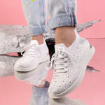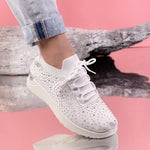 Дамски маратонки Siri - White са лек и много удобен модел, изработен от текстил и декориран с камъни и дебелина на подметката - 3,5 см.