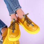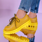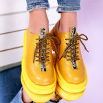 Дамски обувки Debs - Yellow изработени от еко кожа, с удобна платформа от 4,5 см, с голям грайфер, правещи ги едновременно интересни и удобни. С дамските обувки ще сте винаги в крак с модата, неотразими и елегантни.