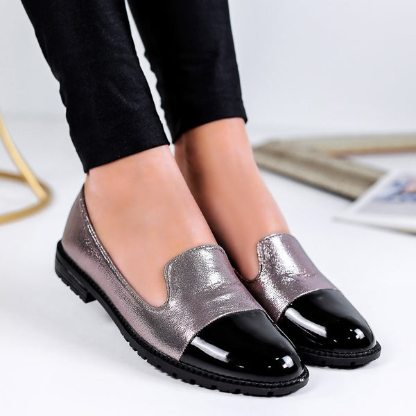 Дамски обувки Dulce - Gun са за всяка елегантна дама, търсеща удобството в своето ежедневие. Изчистени линии в съчетание с еко велур и лачена еко кожа, нека бъдат акцента във вашата визия.